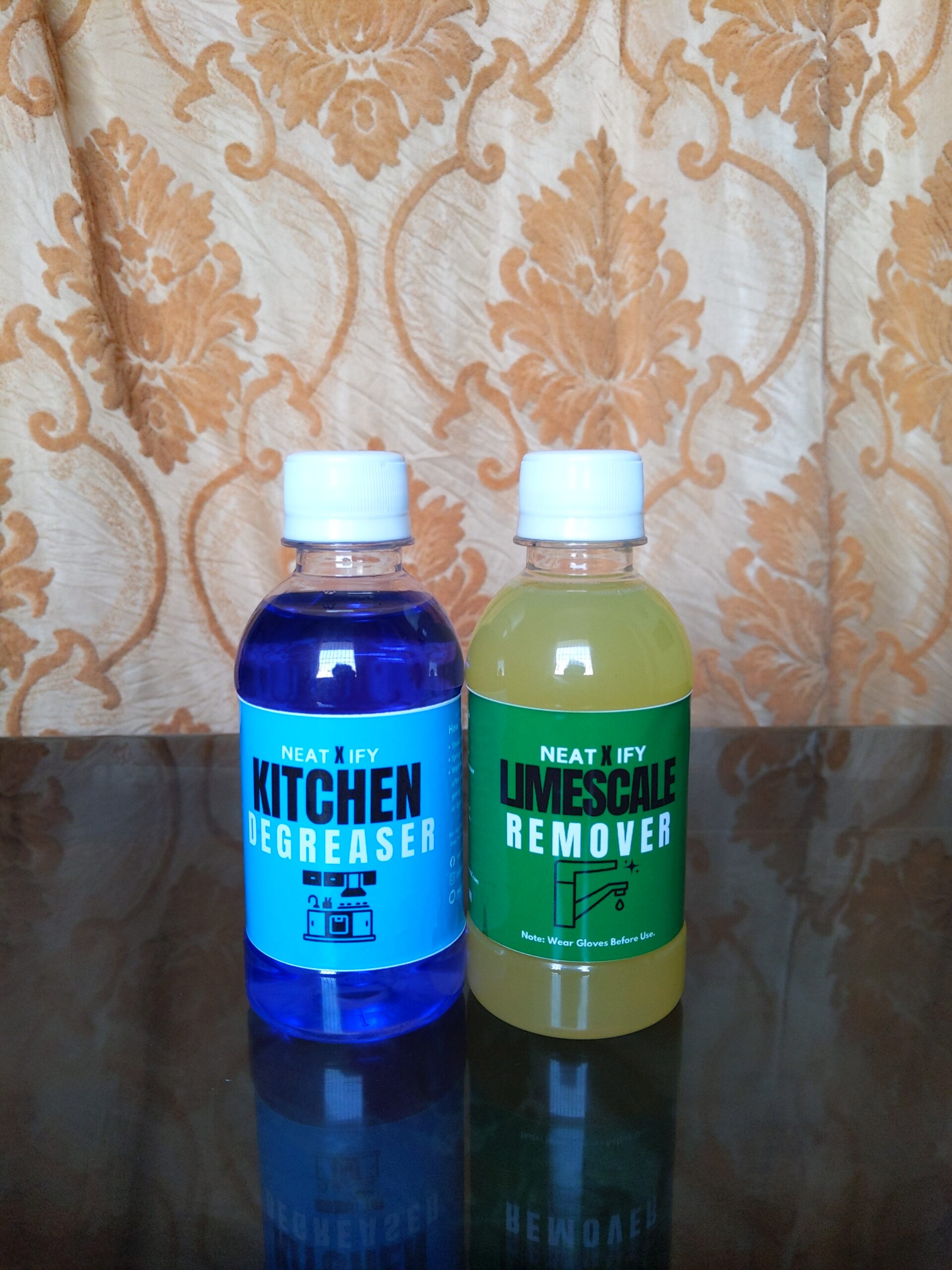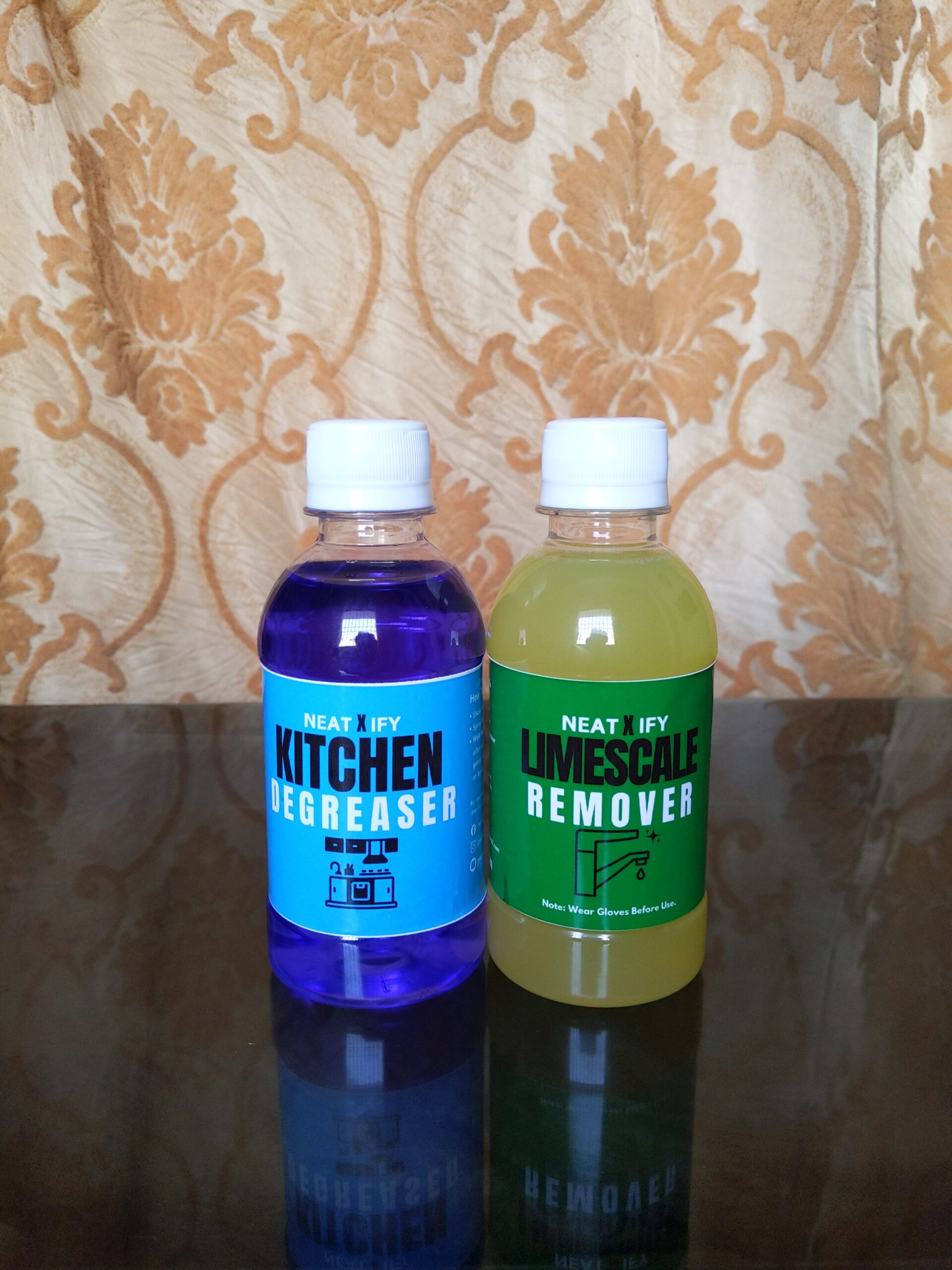 - Kitchen Degreaser: Cuts through heavy grease on stovetops, cabinets, chimneys, and tiles. Fresh-scented, no-rinse formula.